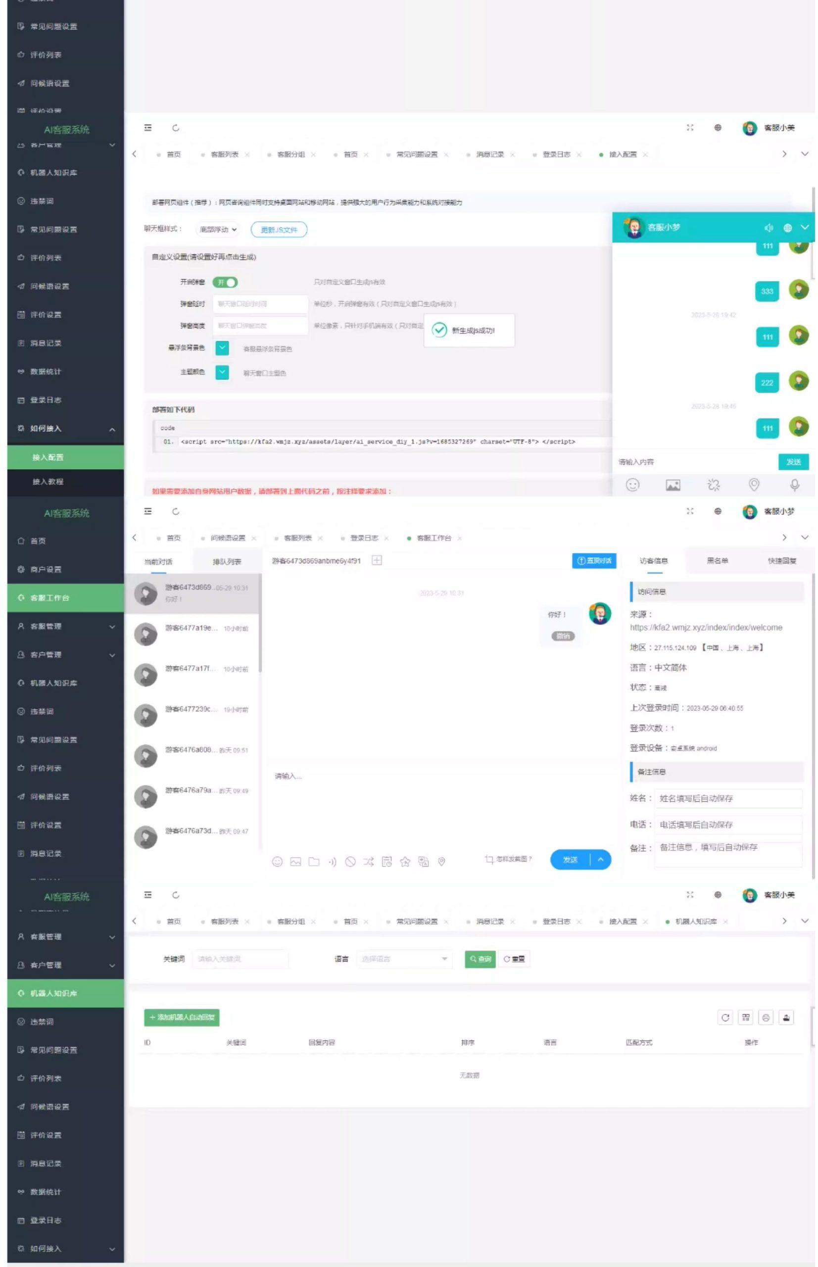 +源码介绍+1.支持客服无限坐席添加2.支持多国语言翻译功能3.新增:语音 定位功能发送4.支持语音消息即时提醒5.可对接H5 网页 小程序 公众号 APP多平台6.支持二维码和专属链接访问