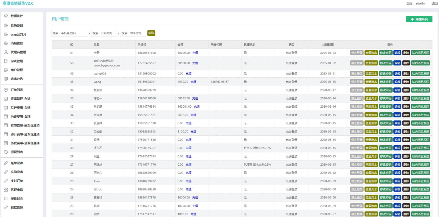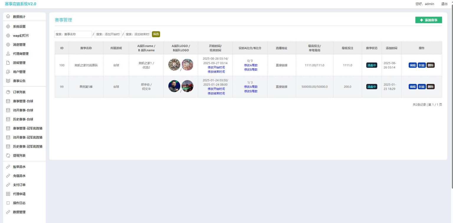 这个还行,我测试看如果修改密码后台就会少些系统设置,这个具体你们自己看看什么原因我没时间看了,赛事自定义设置,也有冠军赛事,自定义赔率,本来是卖的,想了下放给会员当福利吧,里面的支付配置分别在wx和Alipay如果不想对接就设置维护客服在线充值,客服后台可以自定义代码